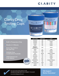 Clarity’s Drugs of Abuse round cups include a temperature strip, are 510K cleared and CLIA waived, and are available in multiple combinations, from 10 to as many as 14 panels. Results can be interpreted in as little as 5 minutes, and the included screw top lid prevents leakage.