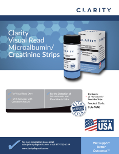 Clarity Urocheck urine reagent strips are only for use with the Clarity Urocheck brand analyzers. The Urocheck line includes a wide variety of models for different clinical needs, including 2GP, 5OB, and even microalbumin and creatinine strips. All strips except for the CD-MAC25 are also FDA cleared for visual read.